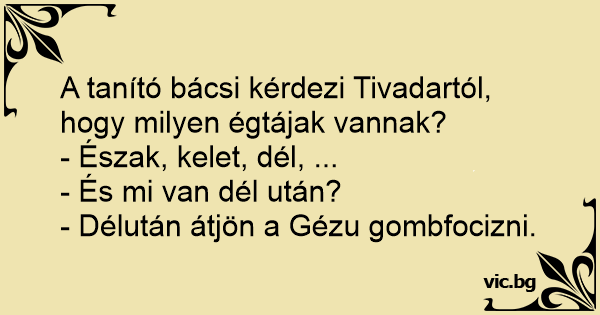 A tanító bácsi kérdezi Tivadartól, hogy milyen égtájak vannak?