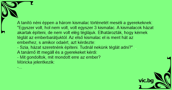 A tanító néni éppen a három kismalac történetét meséli a gyerekeknek:
