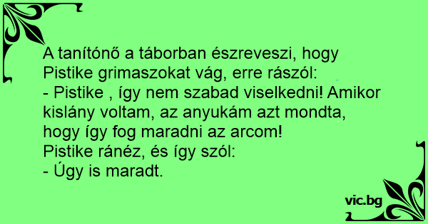 - Pistike , így nem szabad viselkedni! Amikor kislány voltam, az anyukám azt mondta, hogy így fog maradni az arcom!