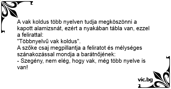 - Szegény, nem elég, hogy vak, még több nyelve is van!