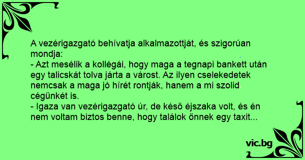 - Igaza van vezérigazgató úr, de késő éjszaka volt, és én nem voltam biztos benne, hogy találok önnek egy taxit...