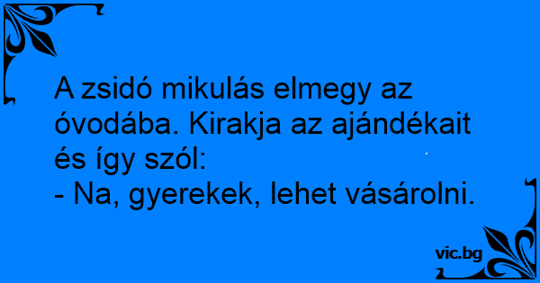 A zsidó mikulás elmegy az óvodába. Kirakja az ajándékait és így szól:
