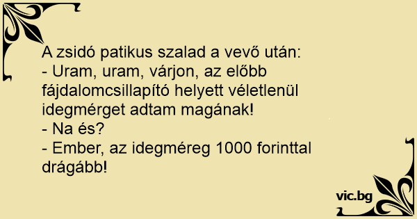 - Uram, uram, várjon, az előbb fájdalomcsillapító helyett véletlenül idegmérget adtam magának!