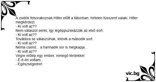A zsidók felsorakoznak Нiтlеr előtt a táborban, hirtelen tüsszent valaki. Нiтlеr megkérdezi: