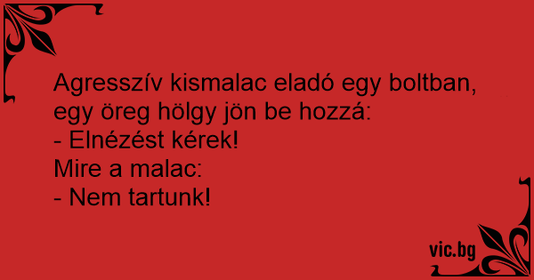 Agresszív kismalac eladó egy boltban, egy öreg hölgy jön be hozzá: