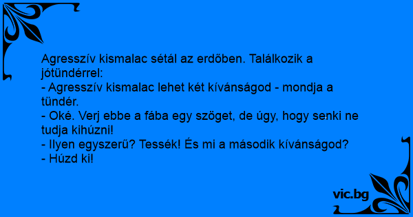 - Agresszív kismalac lehet két kívánságod - mondja a tündér.