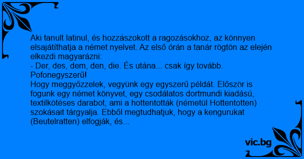 Aki tanult latinul, és hozzászokott a ragozásokhoz, az könnyen elsajátíthatja a német nyelvet. Az első órán a tanár rögtön az elején elkezdi magyarázni: