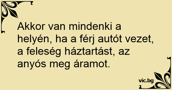 Akkor van mindenki a helyén, ha a férj autót vezet, a feleség háztartást, az anyós meg áramot.
