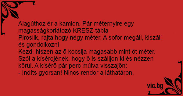 Alagúthoz ér a kamion. Pár méternyire egy magasságkorlátozó KRESZ-tábla