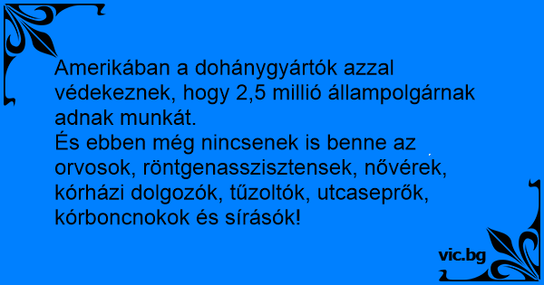 Amerikában a dohánygyártók azzal védekeznek, hogy 2,5 millió állampolgárnak adnak munkát.