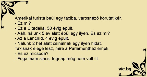 Amerikai turista beül egy taxiba, városnéző körutat kér.
