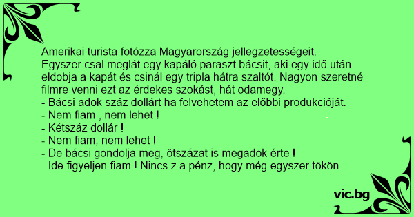 - Ide figyeljen fiam ! Nincs z a pénz, hogy még egyszer tökön vágjam magam a kapával !