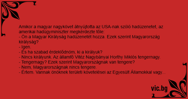 Amikor a magyar nagykövet átnyújtotta az USA-nak szóló hadüzenetet, az amerikai hadügyminiszter megkérdezte tőle:
