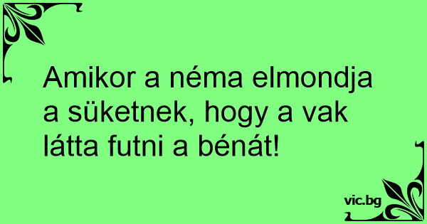 Amikor a néma elmondja a süketnek, hogy a vak látta futni a bénát!