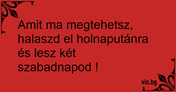 Amit ma megtehetsz, halaszd el holnaputánra és lesz két szabadnapod !