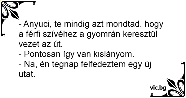 - Anyuci, te mindig azt mondtad, hogy a férfi szívéhez a gyomrán keresztül vezet az út.