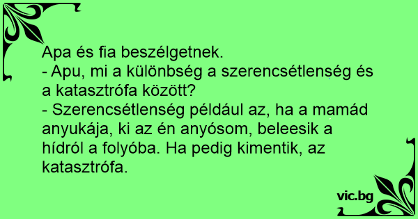 - Szerencsétlenség például az, ha a mamád anyukája, ki az én anyósom, beleesik a hídról a folyóba. Ha pedig kimentik, az katasztrófa.