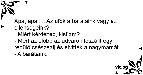 - Mert az előbb az udvaron leszállt egy repülő csészealj és elvitték a nagymamát...