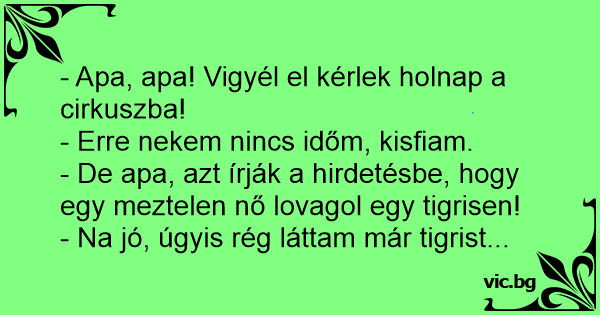 - De apa, azt írják a hirdetésbe, hogy egy meztelen nő lovagol egy tigrisen!