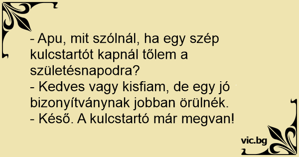- Apu, mit szólnál, ha egy szép kulcstartót kapnál tőlem a születésnapodra?