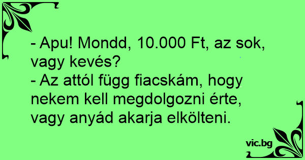 - Az attól függ fiacskám, hogy nekem kell megdolgozni érte, vagy anyád akarja elkölteni.