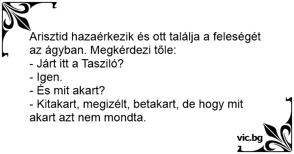 Arisztid hazaérkezik és ott találja a feleségét az ágyban. Megkérdezi tőle: