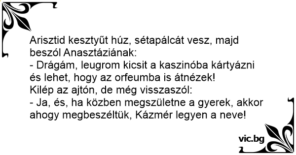 - Ja, és, ha közben megszületne a gyerek, akkor ahogy megbeszéltük, Kázmér legyen a neve!