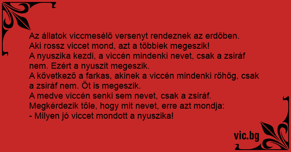 A medve viccén senki sem nevet, csak a zsiráf. Megkérdezik tőle, hogy mit nevet, erre azt mondja: