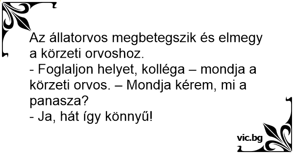 Az állatorvos megbetegszik és elmegy a körzeti orvoshoz.