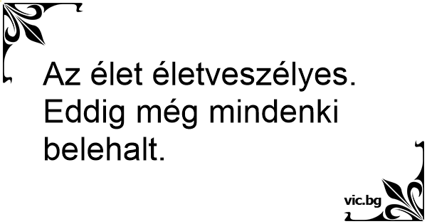 Az élet életveszélyes. Eddig még mindenki belehalt.