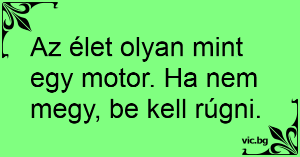 Az élet olyan mint egy motor. Ha nem megy, be kell rúgni.