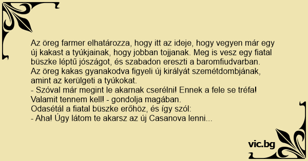 A fiatal kakas gondolja, mit akar itt ez a vén kakas, és így válaszol: