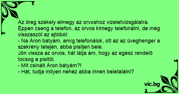 Az öreg székely elmegy az orvoshoz vizeletvizsgálatra.