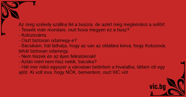 Az öreg székely szállna fel a buszra, de azért még megkérdezi a sofőrt: