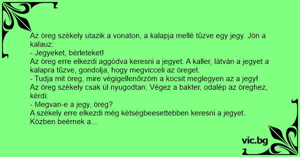 Az öreg székely utazik a vonaton, a kalapja mellé tűzve egy jegy. Jön a kalauz: