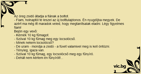 A vevő fizet és távozik. Mondja az öreg zsidó:
