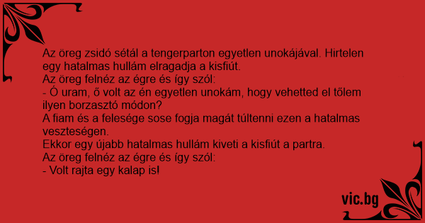 Az öreg zsidó sétál a tengerparton egyetlen unokájával. Hirtelen egy hatalmas hullám elragadja a kisfiút.