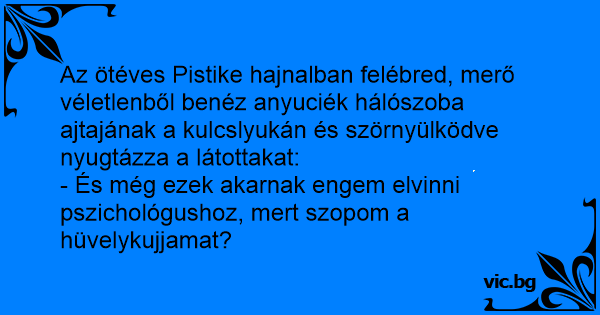 - És még ezek akarnak engem elvinni pszichológushoz, mert szopom a hüvelykujjamat?