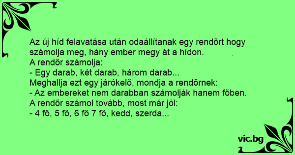 Az új híd felavatása után odaállítanak egy rendőrt hogy számolja meg, hány ember megy át a hídon.