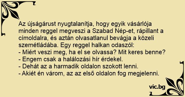 - Engem csak a halálozási hír érdekel.