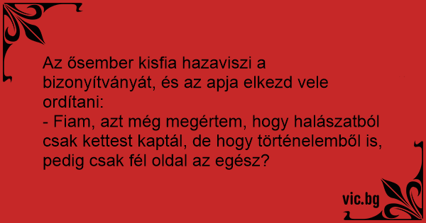 - Fiam, azt még megértem, hogy halászatból csak kettest kaptál, de hogy történelemből is, pedig csak fél oldal az egész?