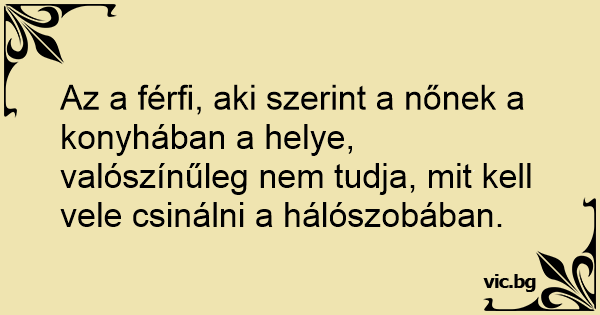 Az a férfi, aki szerint a nőnek a konyhában a helye, valószínűleg nem tudja, mit kell vele csinálni a hálószobában.