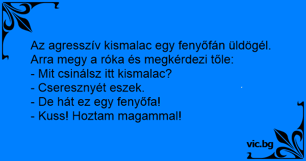 Az agresszív kismalac egy fenyőfán üldögél. Arra megy a róka és megkérdezi tőle: