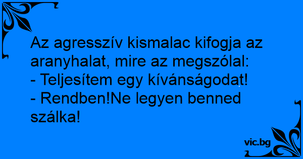 Az agresszív kismalac kifogja az aranyhalat, mire az megszólal: