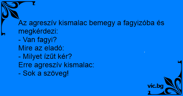 Az agreszív kismalac bemegy a fagyizóba és megkérdezi: