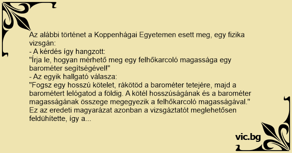 Az alábbi történet a Koppenhágai Egyetemen esett meg, egy fizika vizsgán: