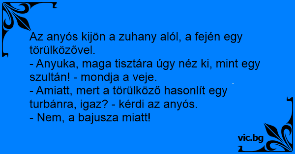- Amiatt, mert a törülköző hasonlít egy turbánra, igaz? - kérdi az anyós.