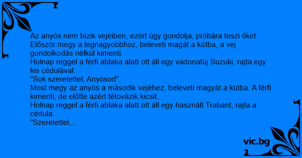 Az anyós nem bízik vejéiben, ezért úgy gondolja, próbára teszi őket.