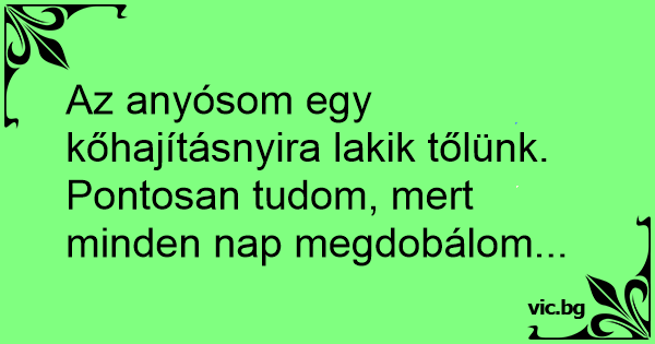 Az anyósom egy kőhajításnyira lakik tőlünk. Pontosan tudom, mert minden nap megdobálom...
