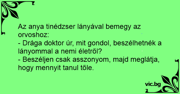- Drága doktor úr, mit gondol, beszélhetnék a lányommal a nemi életről?